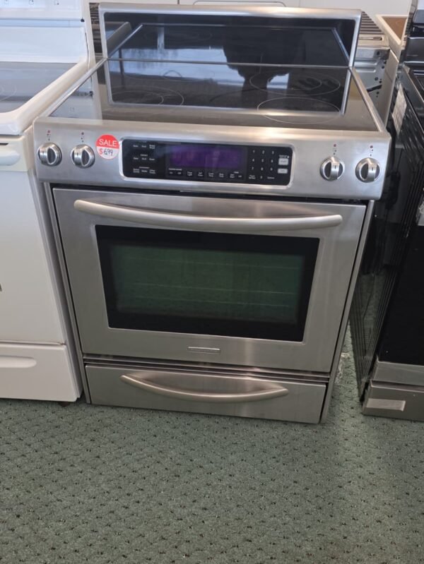 KITCHENAID 30" LIKE NEW SLIDE IN ELECTRIC RANGE