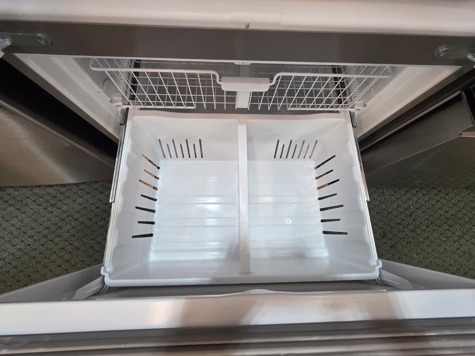 The Whirlpool WRF555SDFZ19 is a premium 25 cu. ft. French Door refrigerator engineered to balance sophisticated style with expansive storage. Designed for busy households, this unit features wide-opening dual doors that provide easy access to fresh groceries at eye level, while the high-capacity bottom freezer keeps frozen staples neatly organized. The modern, fingerprint-resistant stainless steel exterior ensures your kitchen maintains a clean, professional look even in high-traffic areas. Available at Appliance Worlds for just $1,395, this “New Scratch & Dent” unit offers Whirlpoolโs signature durability and advanced features at an unbeatable local value.
